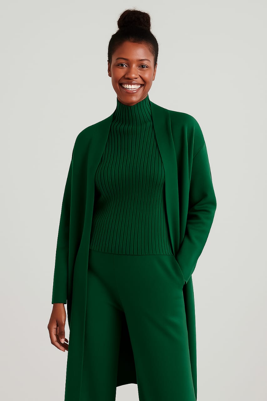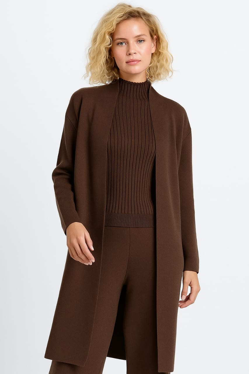 Vestir esse conjunto é mais do que usar roupas: é se sentir acolhida, segura e confiante. O cardigan leve envolve o corpo como um abraço suave, enquanto a camiseta e a calça de cintura alta proporcionam liberdade de movimento e sensação de bem-estar. Seja no escritório, em casa ou em um passeio, você terá a certeza de estar pronta para qualquer situação, transmitindo charme e autenticidade. Ele se adapta ao seu ritmo e estilo de vida, oferecendo o equilíbrio ideal entre elegância clássica e conforto duradouro.