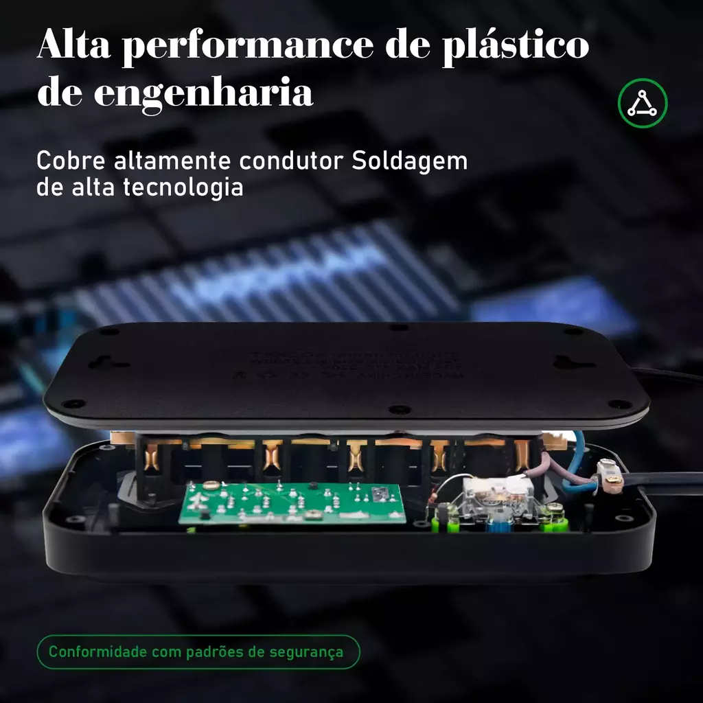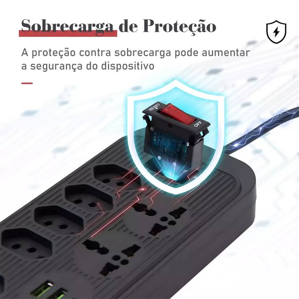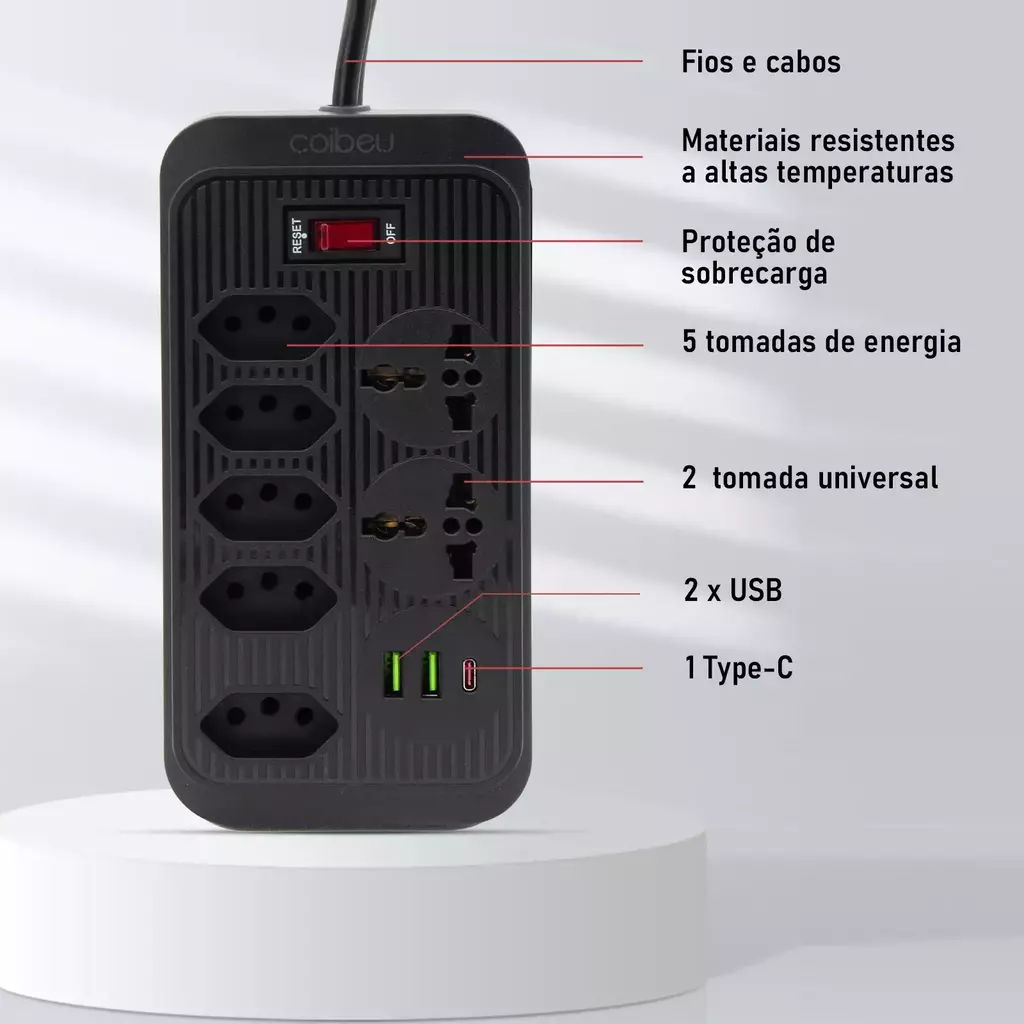 Conecte seus dispositivos com confiança e leve a tranquilidade para dentro de casa ou do seu ambiente de trabalho. Com um design moderno e compacto, essa extensão elétrica vai muito além da utilidade básica: ela entrega segurança, durabilidade e um toque de sofisticação ao seu ambiente.