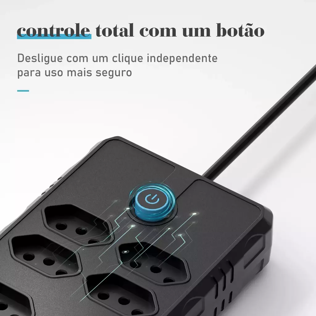 Imagine nunca mais precisar disputar tomadas ou ficar preso à posição dos seus aparelhos. Com até 2 metros de cabo, você tem liberdade para organizar o ambiente do seu jeito, sem abrir mão da estética.